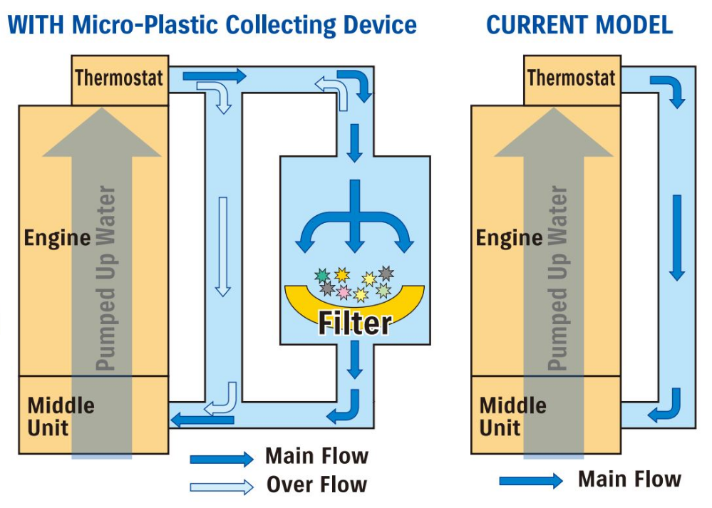 This design has no negative impacts on engine performance in any way since only returning water that has already been used to cool the engine is used. There is also a secondary bypass hose that maintains water flow in the event the filter ever become clogged.