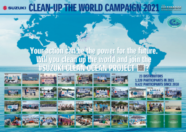 CLEAN UP THE WORLD CAMPAIGNClean-Up the World Campaign is the root of Suzuki’s awareness to environmental issues and the SUZUKI CLEAN OCEAN PROJECT. Since 2010, Suzuki Motor Corporation has been voluntarily conducting the ‘Clean-up the World Campaign’ essentially a collection of organised clean-up activities in seas, rivers, lakes, and ponds where the outboard motors are used. This event is conducted annually to contribute to a healthier and cleaner marine environment. Over 10,000 people & 44 distributors have participated in this global initiative so far. Suzuki is committed to taking responsible actions against plastic waste problems by reviewing its own contributions to the environment and introducing new measures to reduce plastic usage and waste. |