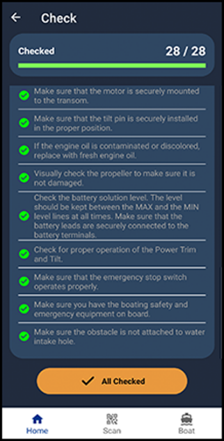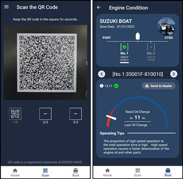 QR Code* Once you send the engine data to nearby dealer, they will check the data precisely and maintain for the next boating. |